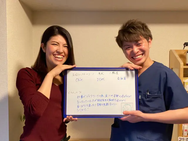姿勢が良くなりました!さらに、デスクワークの肩こりが楽になり、日常生活でも正しい姿勢を意識できるようになりました。